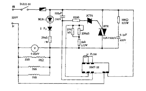 下圖為BGX-2080型防爆真空干燥箱的電路原理圖如圖,箱體的溫度控制采用了智能電腦溫控,溫度信號(hào)的采集用鉑電阻,經(jīng)溫度控制器的放大與設(shè)定值進(jìn)行比較得到PID控制信號(hào),控制信號(hào)將控制可控硅的通斷,可控硅再控制加熱器加熱狀態(tài),達(dá)到自動(dòng)控溫的目的。